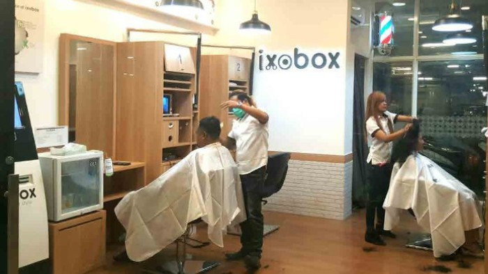 - Peralatan Utama: Mesin kiosk pembayaran mandiri, kursi pangkas ergonomis, dan sistem Ixo-air.