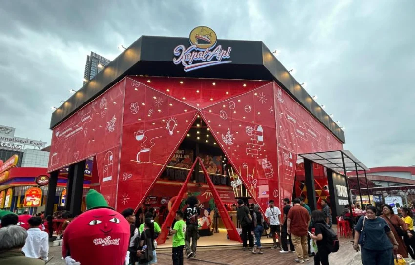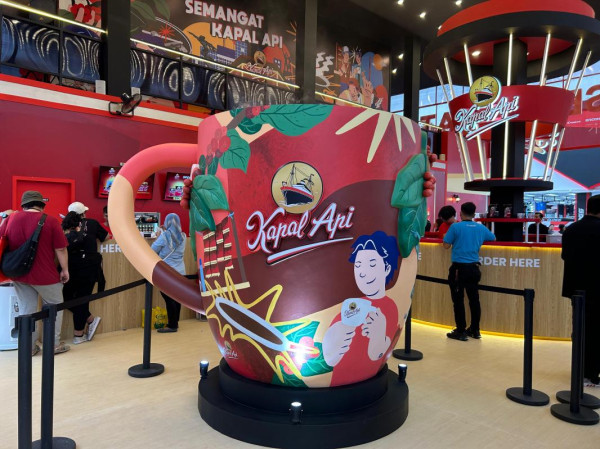 - Booth atau gerai minimalis dengan branding resmi Kapal Api.